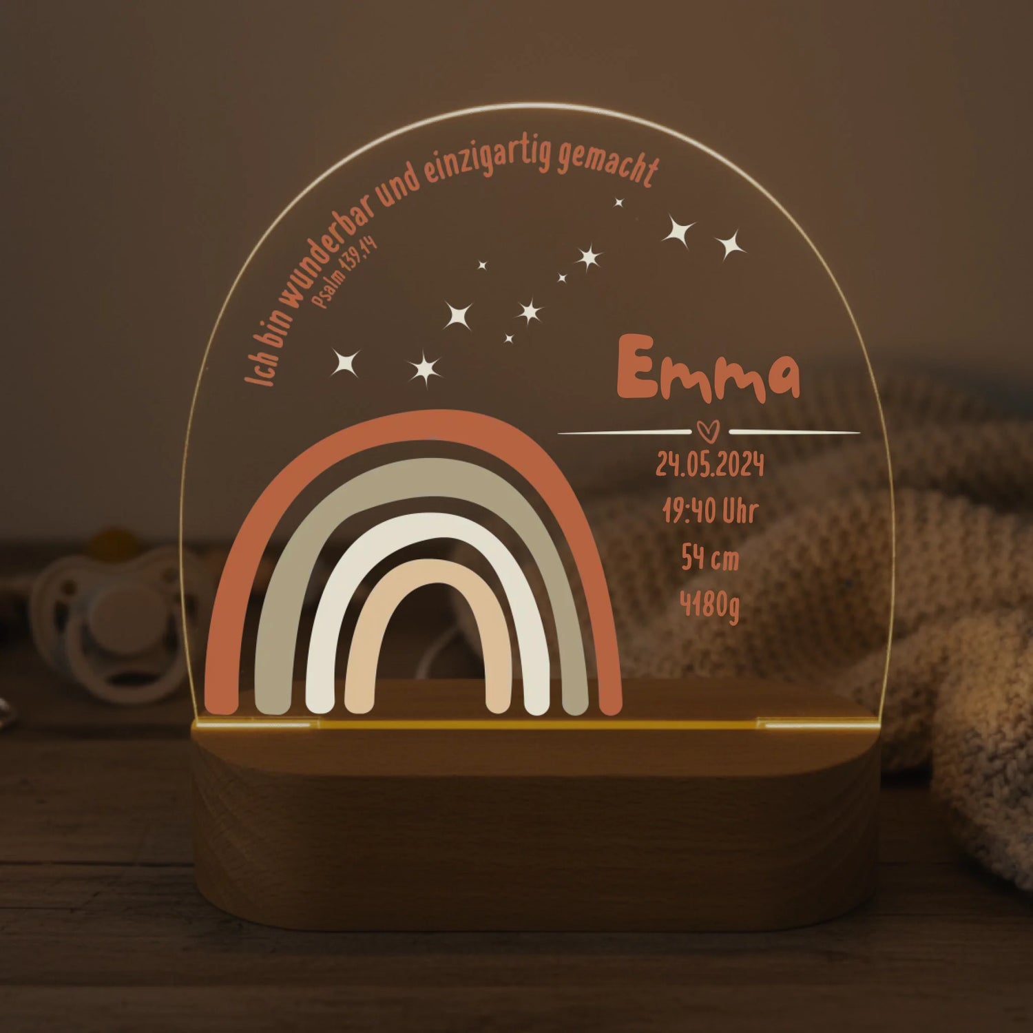 Wunderbar gemacht Psalm 139 - Personalisiertes Nachtlicht mit Geburtsdaten