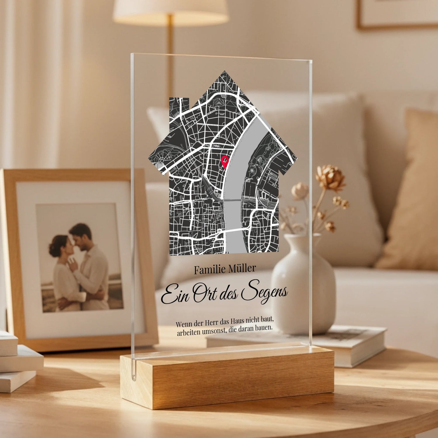 Unser Zuhause - Personalisierte Acryltafel mit Karte (20x30)
