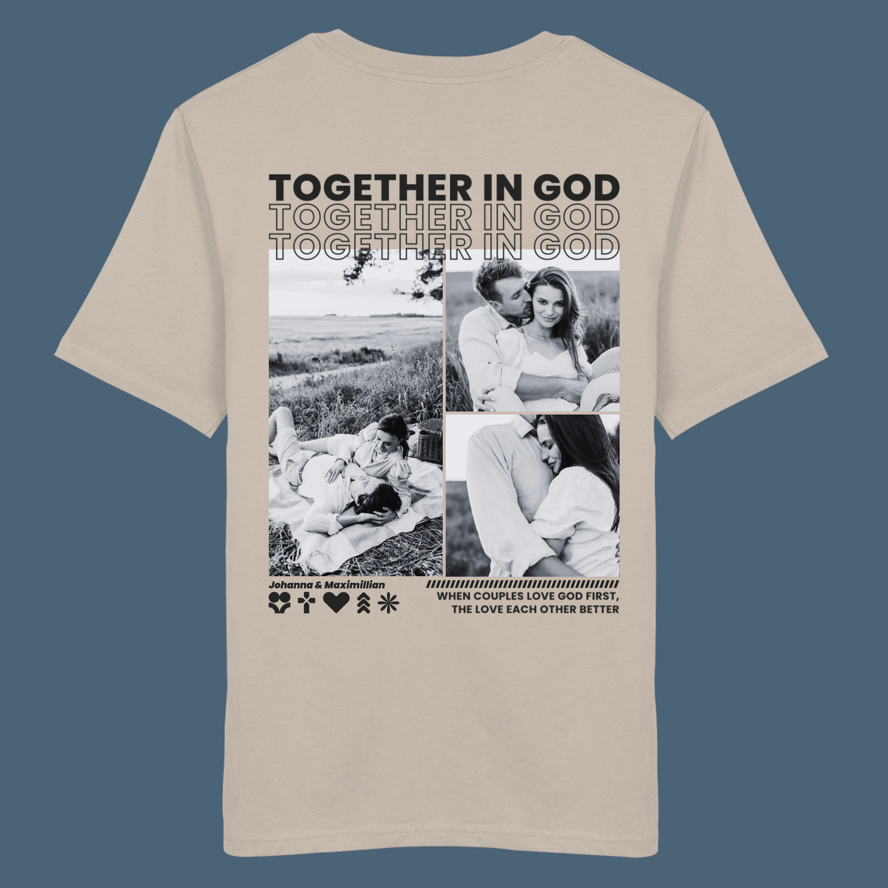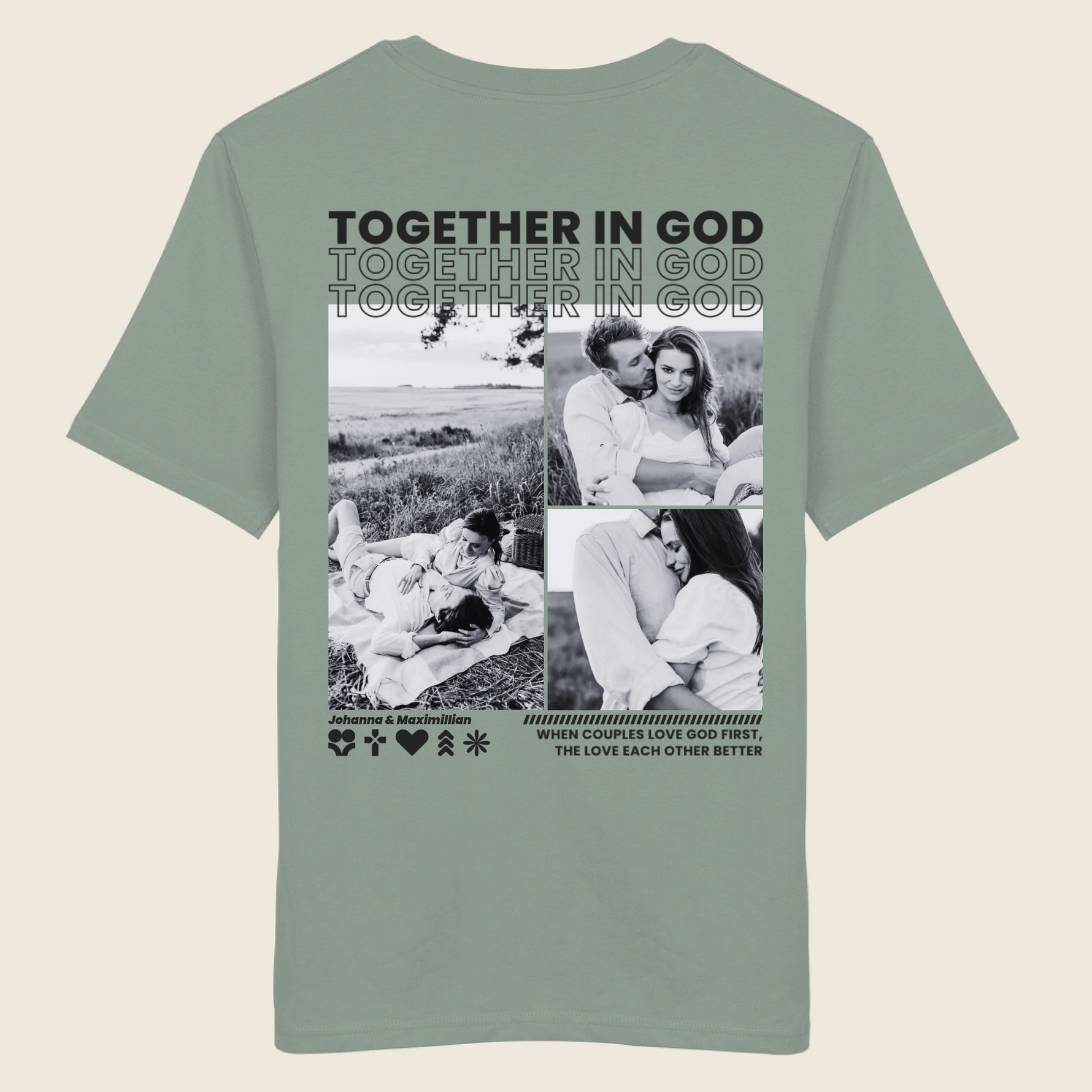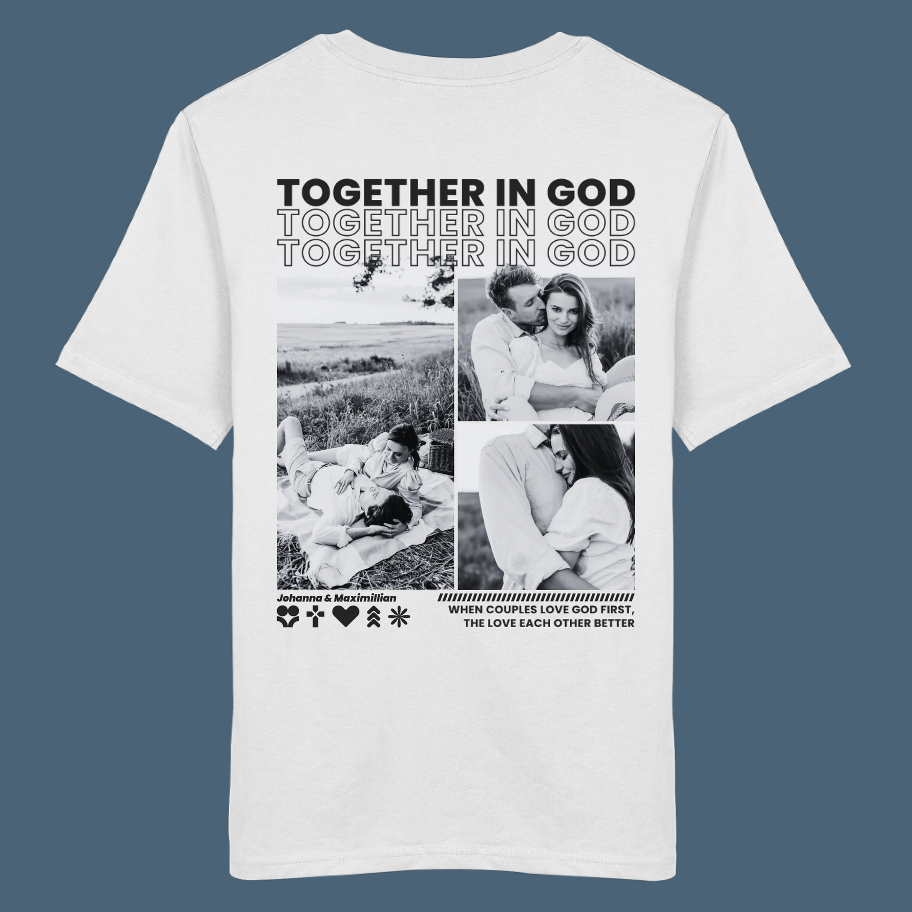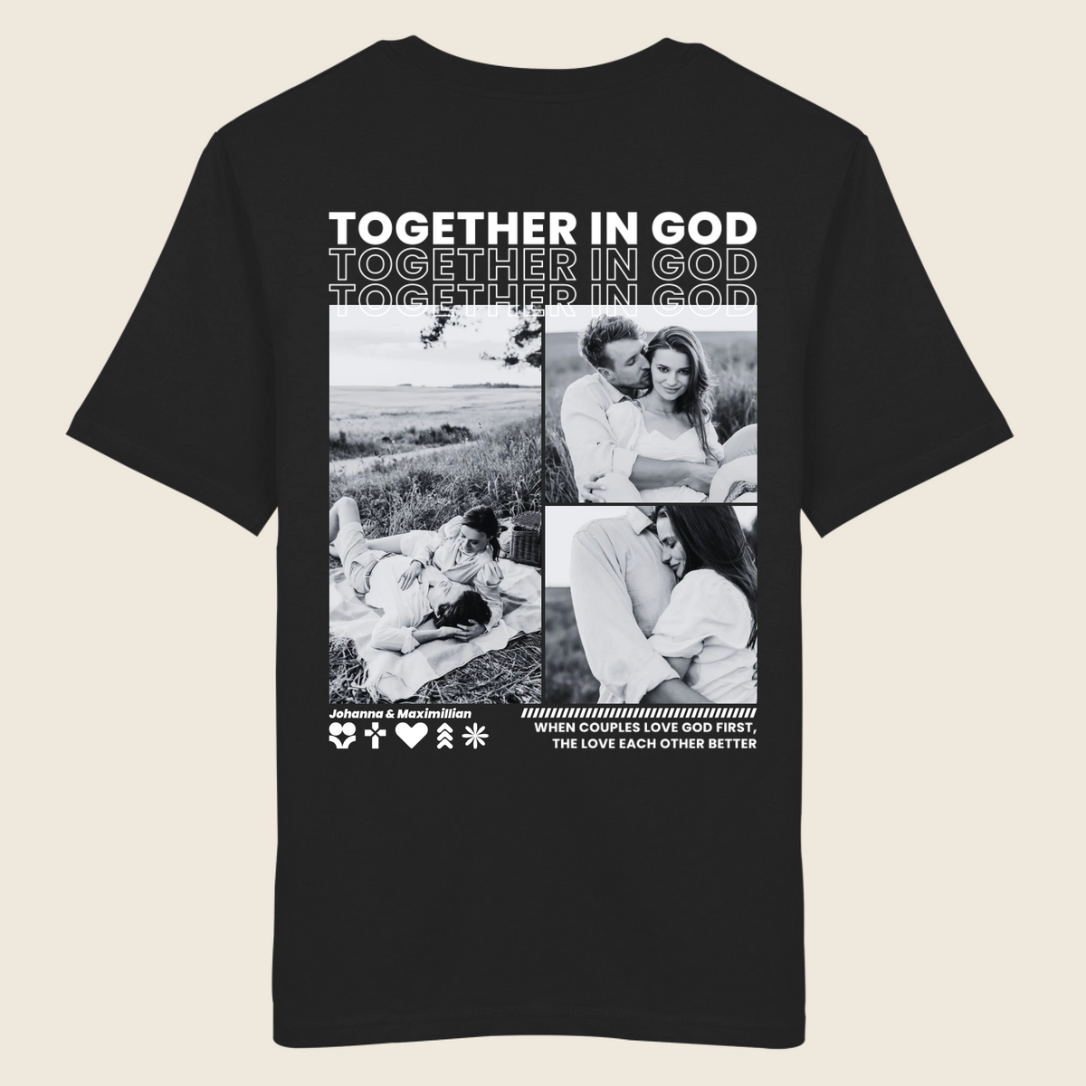 • Einzigartig wie eure Liebe: Gestaltet mit euren Fotos, Namen und einem christlichen Spruch oder Bibelvers wird jedes Shirt zu einem ganz persönlichen Erinnerungsstück.